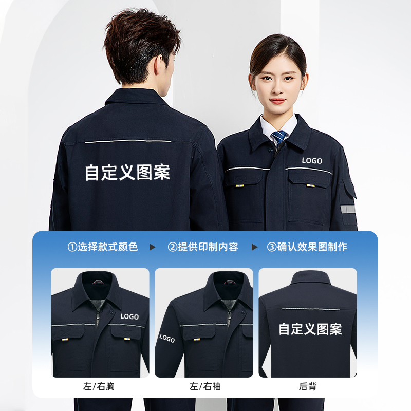 下一页:YJ-6901 春秋纯棉工作服套装印字男耐磨工作服机电维修工装定制劳保工作服