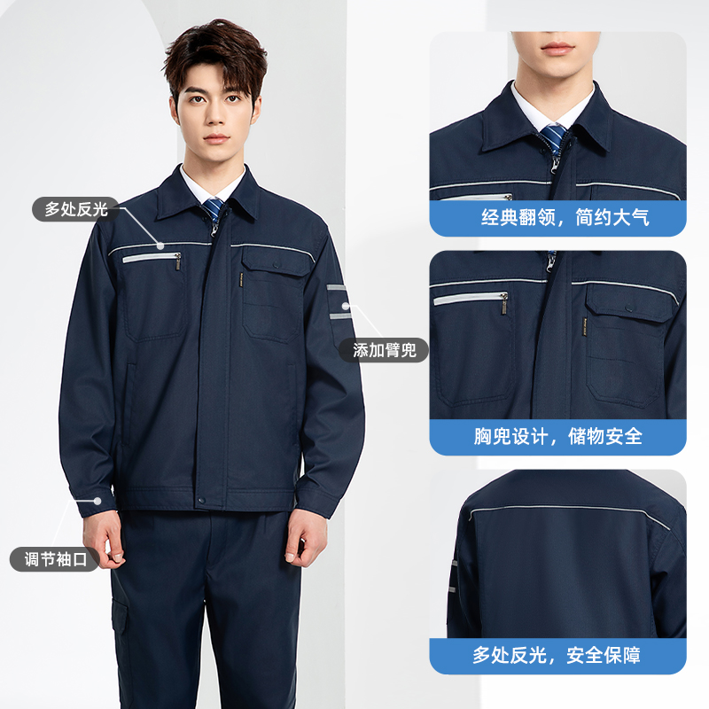 下一页:JC-160 春秋工作服劳保服套装男反光条电子化工厂服车间电工服工作服定制