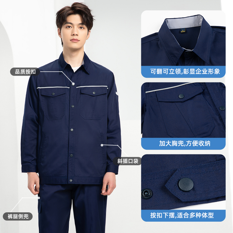 下一页:DM241D 海源夏季纯色工作服套装定制薄款反光条纽扣外套耐磨耐脏劳保服